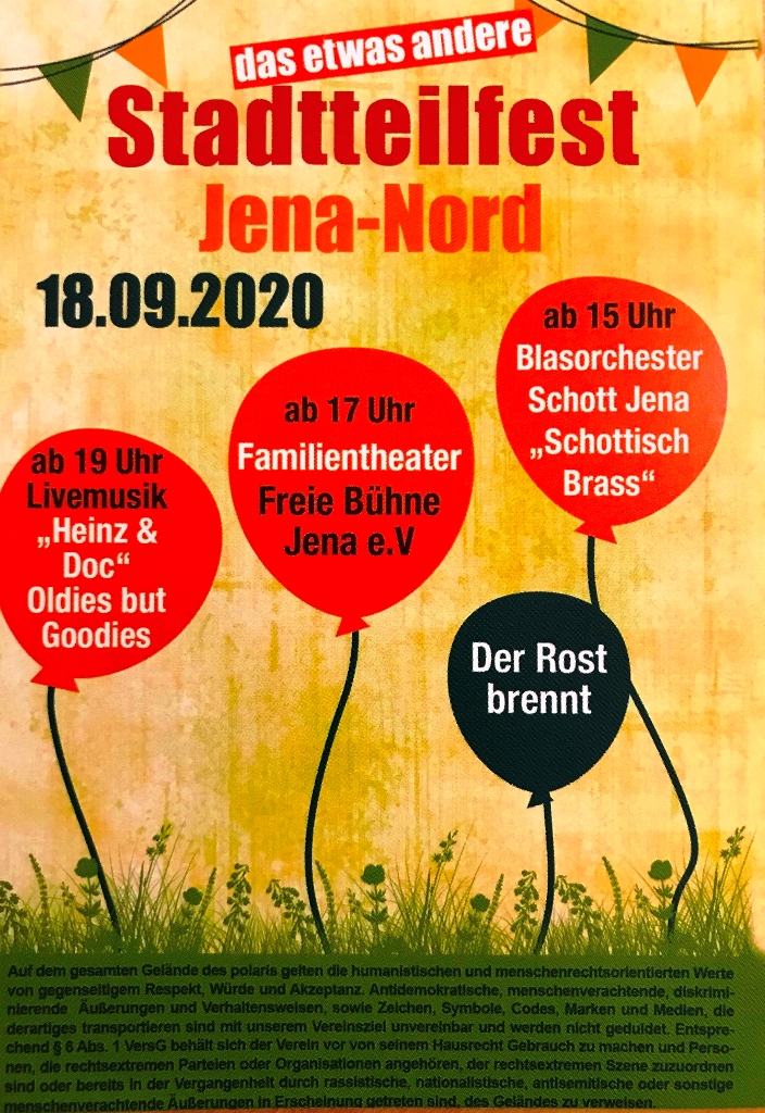 gern möchten wir Sie auch in diesem Jahr auf das stattfindende Stadtteilfest Jena-Nord am 18.09.2020 hinweisen.