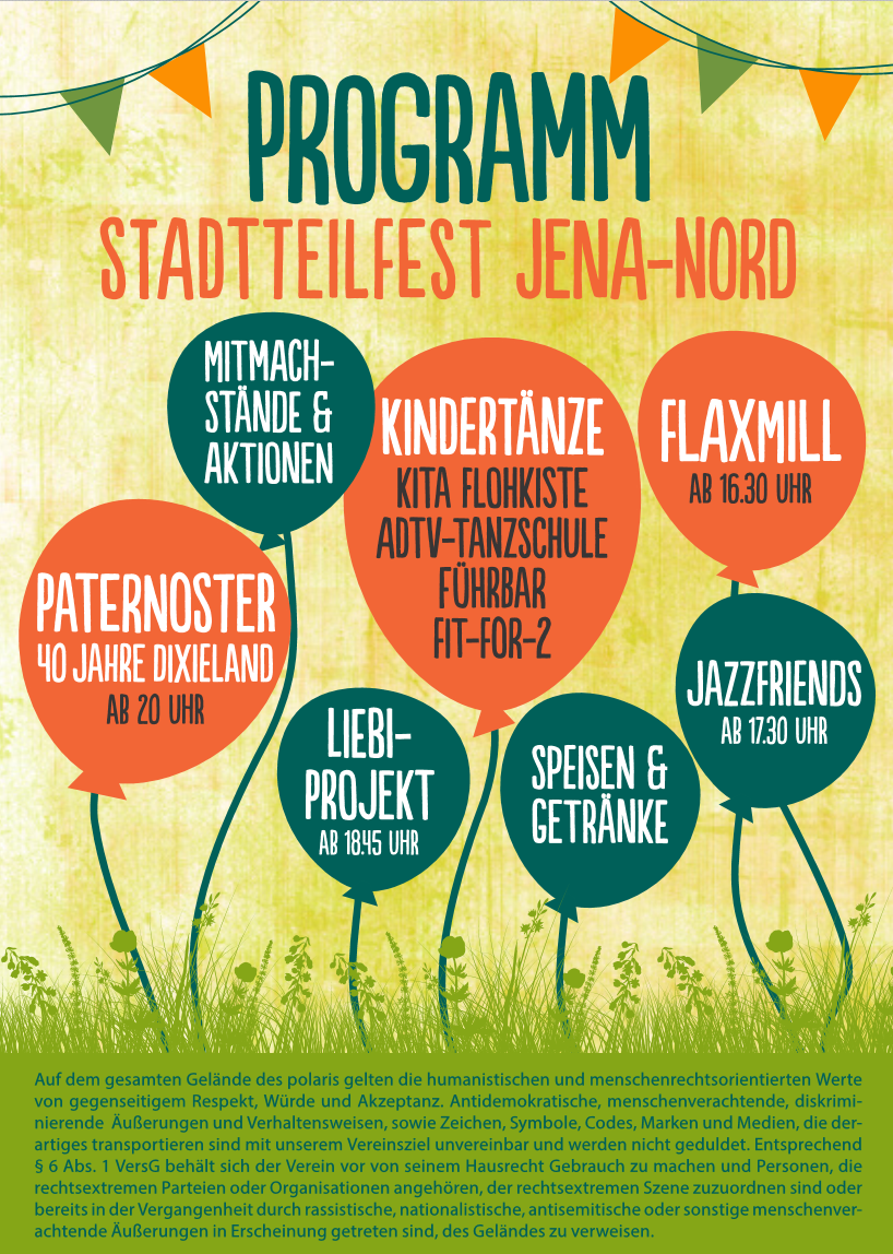 wir freuen uns auch in diesem Jahr unser Stadtteilfest Jena-Nord durchführen zu können.