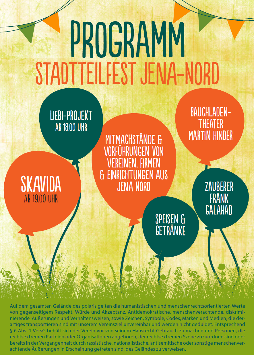 Am Jugendbildungszentrum Polaris in der Camburger Straße findet von 15-20.30 Uhr ein umfangreiches Familien- und Abendprogramm mit Musik und Kindertänzen für Jung und Alt statt.